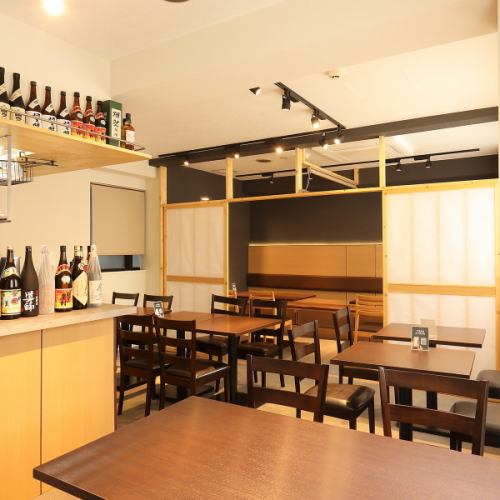 【カウンター席ではお一人様から】8席あるカウンター席は、お一人様から気軽にご利用いただけます。お1人様でのサク飲みやお酒好き同士の交流もお楽しみください♪豊富な日本酒、焼酎どれを選んだらいいかわからない...そんな方もご安心ください!スタッフが丁寧におすすめいたします◎